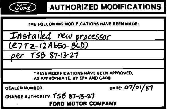 ACTION: To correct this, change the vehicle calibration to 7-72J-R10 by installing a new level EEC IV processor (E7TZ-12A650-BLD).