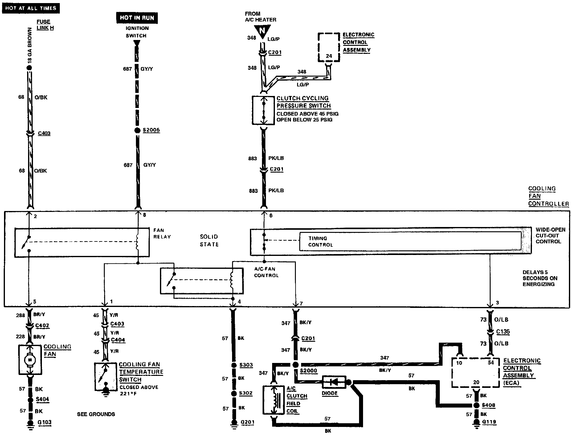 Fig. 8 Compressure Clutch & Cooling Fan Wiring Circuit. 4-140/2.3L Engine:
