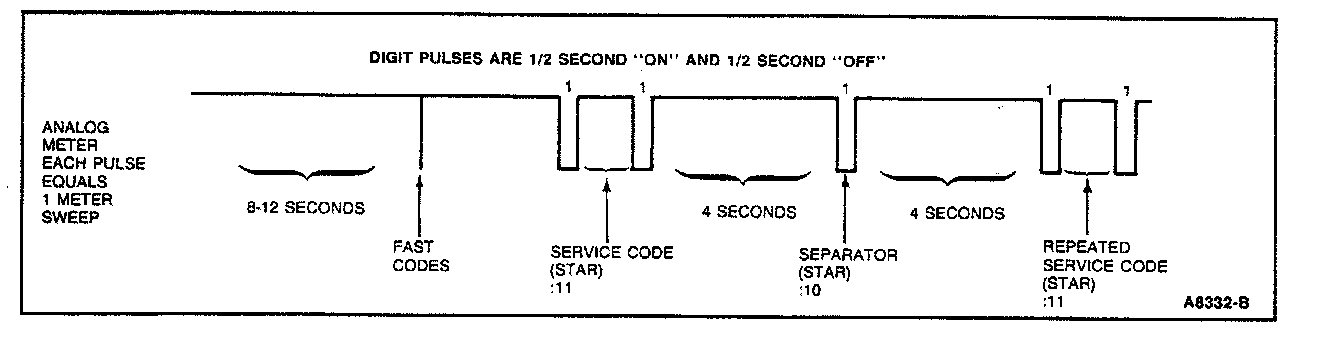 The service codes are transmitted on the Self-Test output (found in the Self-Test connector) in the form of timed pulses, and read by the technician on voltmeter or on the STAR tester.