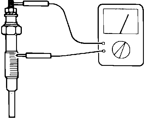 24. Connect voltmeter between glow plug buss bar and engine block. Connect coolant temperature sensor, then start engine. Note voltage while disconnecting coolant temperature sensor electrical connector. Voltage should be 5---8 volts with sensor connected and no voltage with sensor disconnected. If voltage is satisfactory, glow plug system is satisfactory and problem is elsewhere in vehicle. If voltage is not satisfactory, repeat step 21.