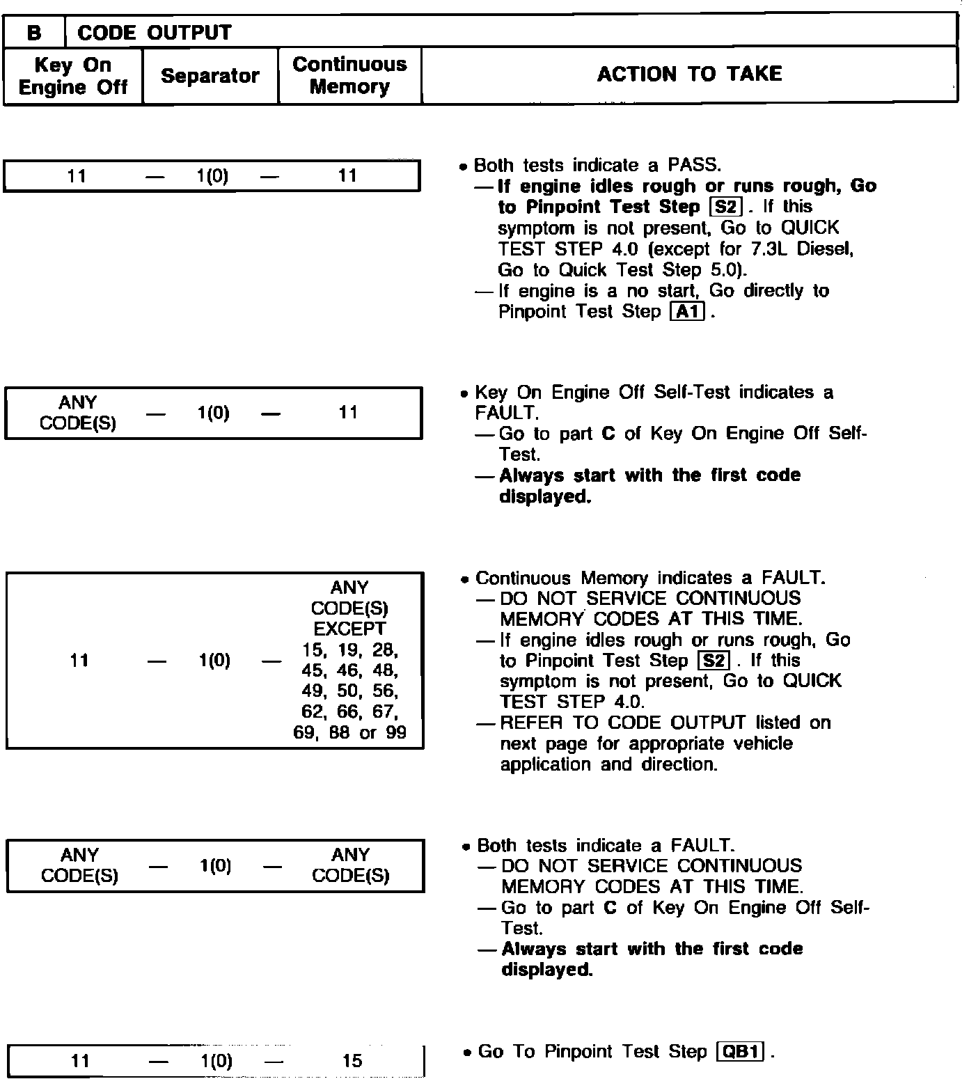 ^ Continuous Memory Codes recorded in this step will be used for diagnosis in Step 6.0 after a PASS code 11 is received in both the Key On Engine Off and the Engine Running Self-Tests.