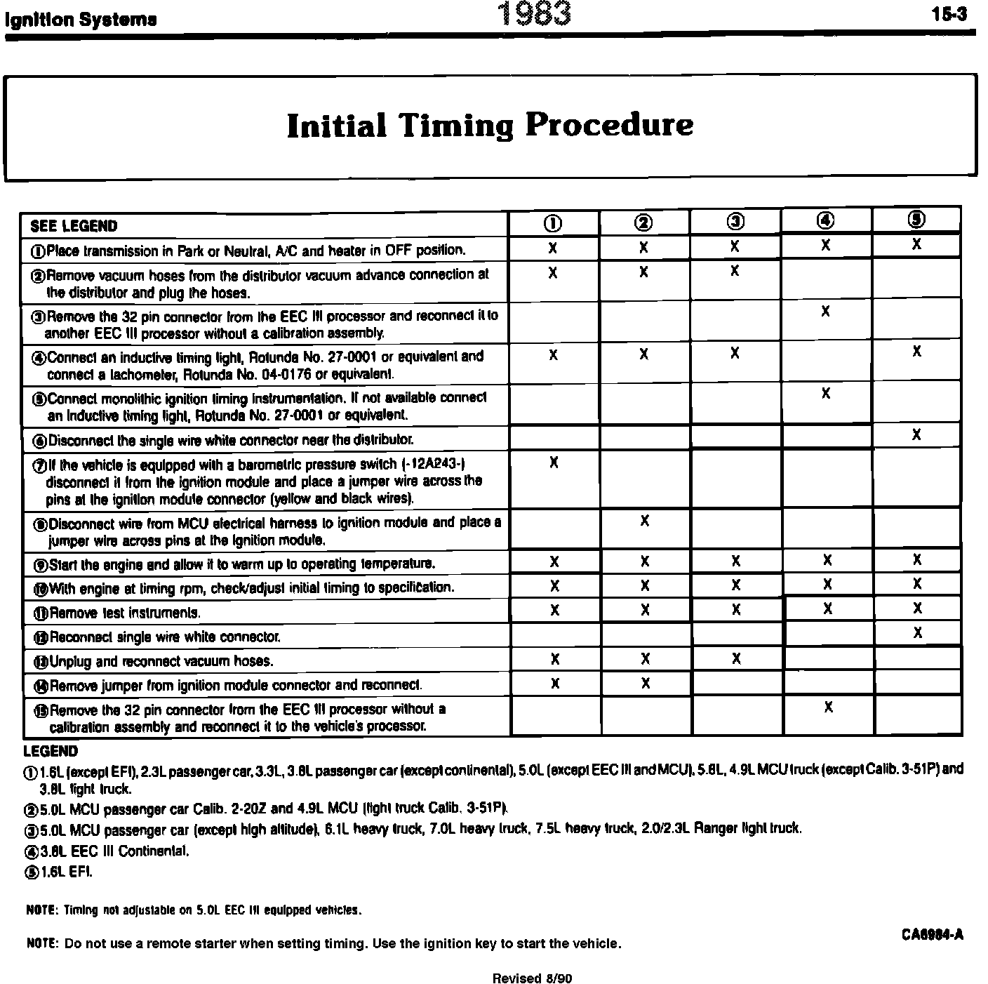 90ford27 ENGINE/ EMISSIONS DIAGNOSIS SHOP MANUAL- 1983-1990---NOTE ADDED TO UPDATE INITIAL TIMING PROCEDURE