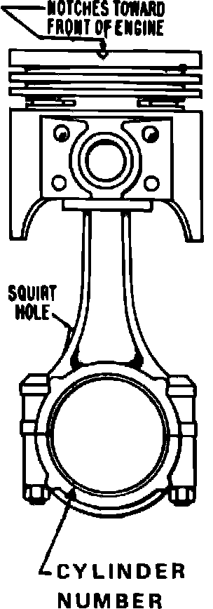 Assemble the rod to the piston with the notch on top of piston facing front of engine,Fig. 9. After installation, check connecting rod big end side clearance. Clearance should be .0035---.0105 inch.