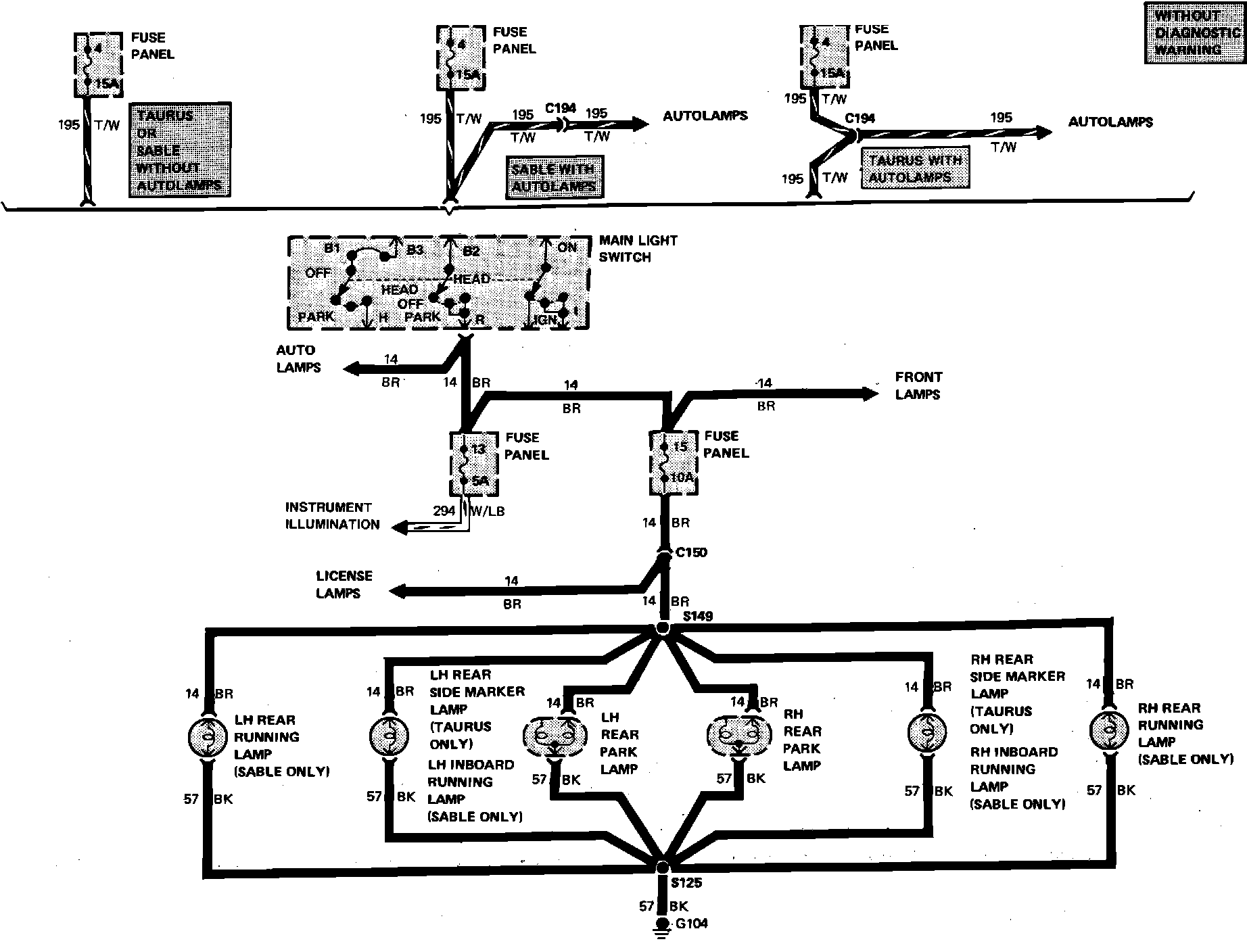 Fig. 17 Exterior Lamps Wiring Circuit. Less Diagnostic Warning: