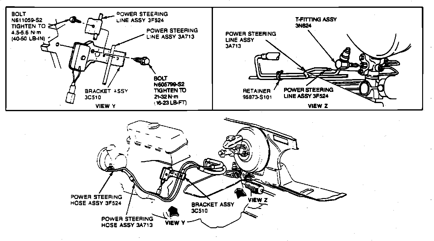 1. Position power steering lines in vehicle and connect lines at power steering pump and steering gear.