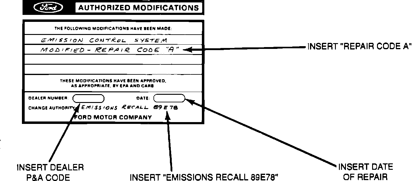 Exhibit 4 Emissions Recall 89 E78 Repair Code "A"AUTHORIZED MODIFICATIONS DECAL FOR ALL VEHICLES