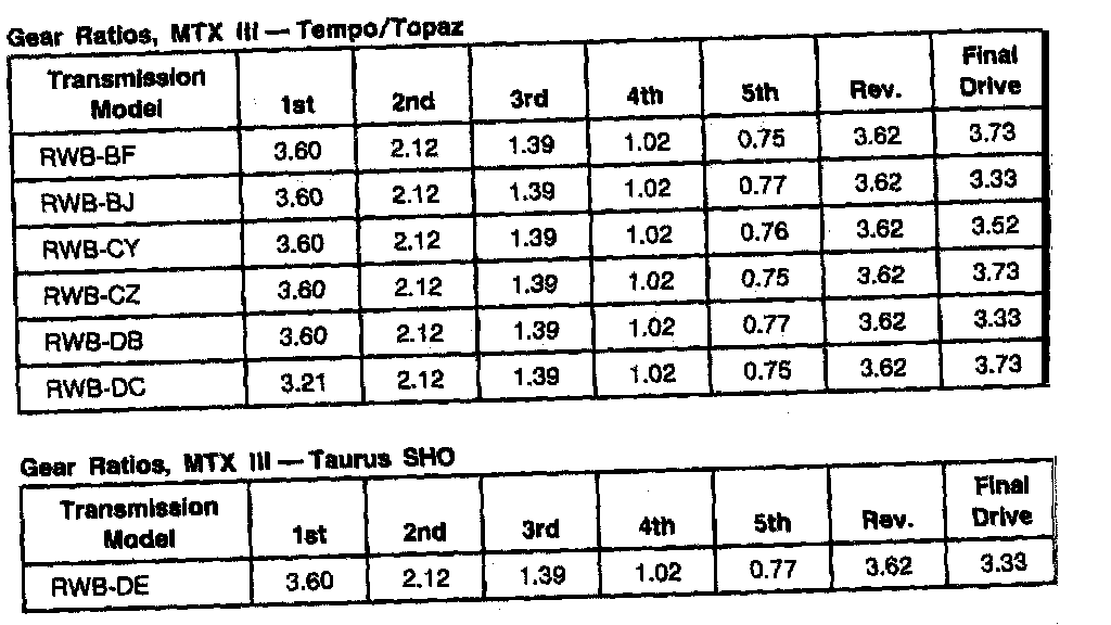 MTX III 5-spd M/T, Gear Ratios (Taurus/Sable):