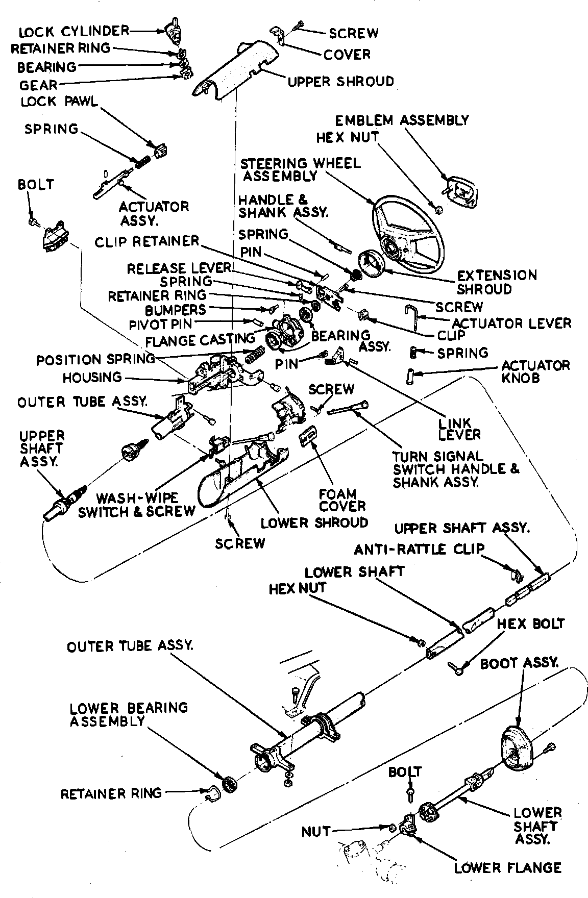 Fig. 12 Tilt steering column exploded view (Typical). 1984---87 EXP, Tempo & Topaz: