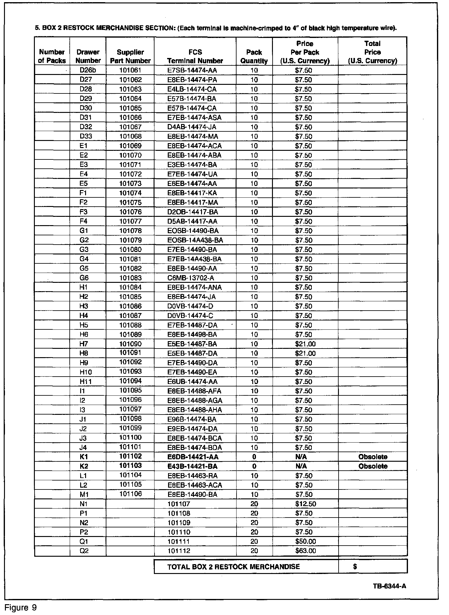 If wiring repairs are required, dealers can obtain a kit by using the included Order Form (Figures 6-11) shown. Pricing information is included for the complete boxes and restocking merchandise for the individual drawers.