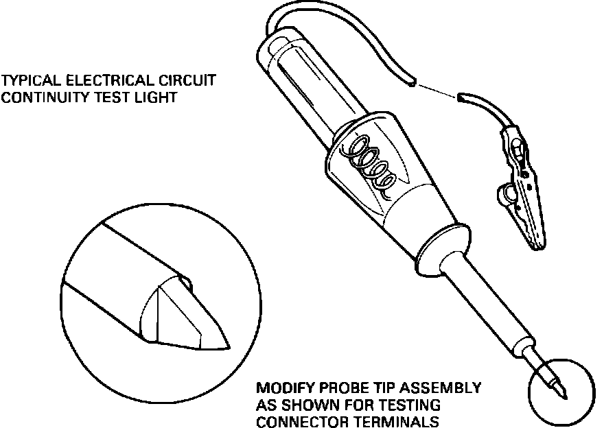 ACTION: To prevent damage to the connector terminals, we recommend modifying the probe tip for testing as illustrated in Figure 2 or purchasing an electrical circuit continuity tester from the following source.