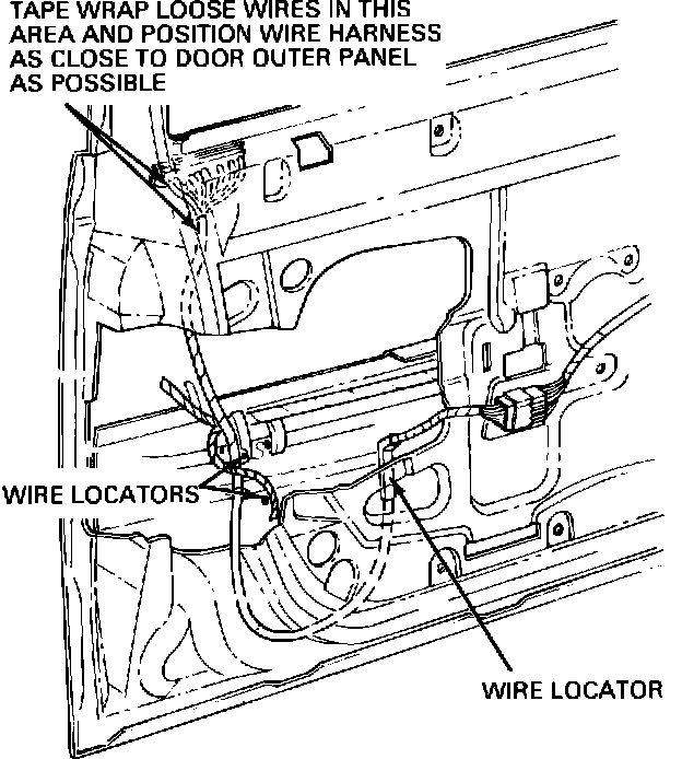 1. Remove the door trim panel and water shield per the 1987 Taurus/Sable Shop Manual, Section 45-03.