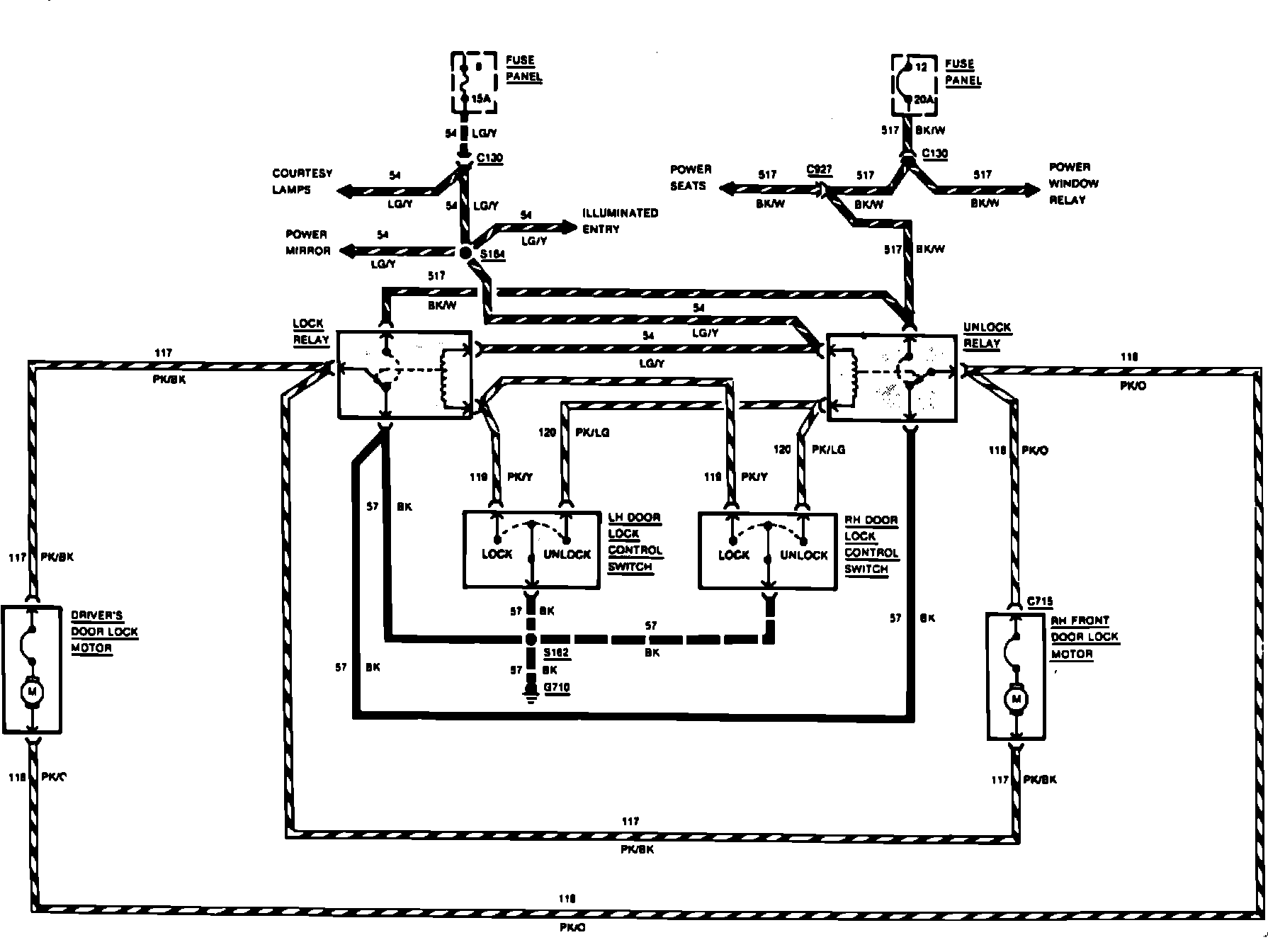 Fig. 34 Power Door Locks Wiring Circuit. 2 Door Models: