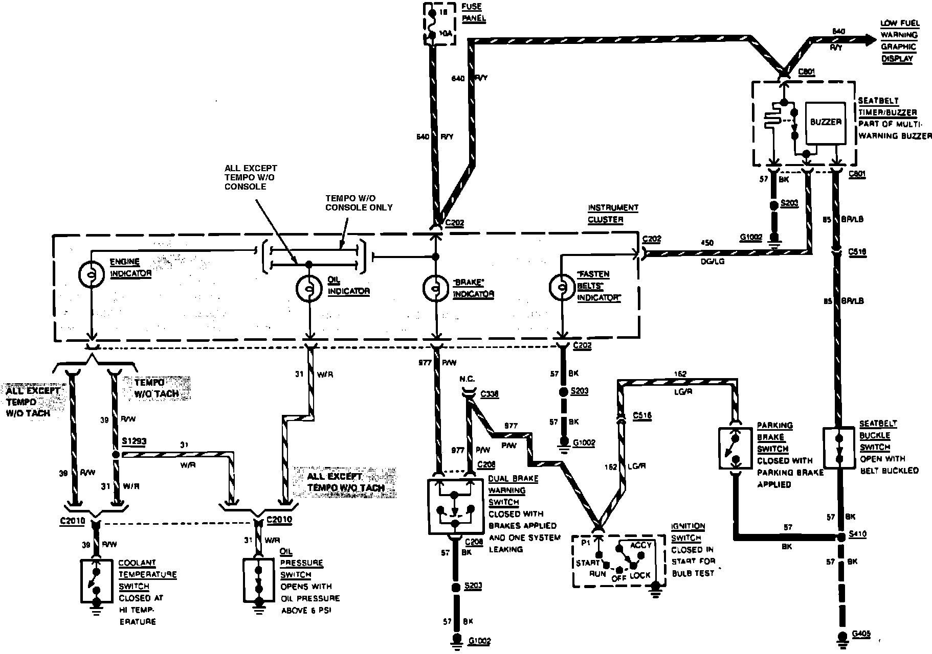 Fig. 47 Warning Indicators Wiring Circuit. Gasoline Engine: