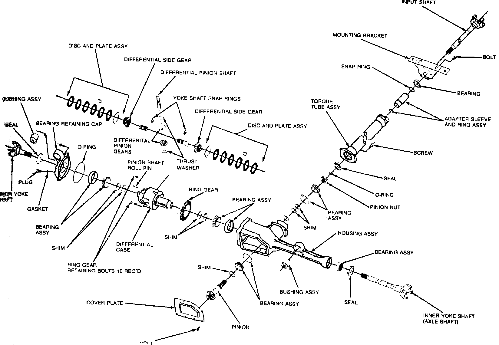 The housing assembly consists of a cast center and tube assembly with integral cast suspension attaching gears and a stamped rear plate. The plate uses a silicone sealant than a conventional type gasket.