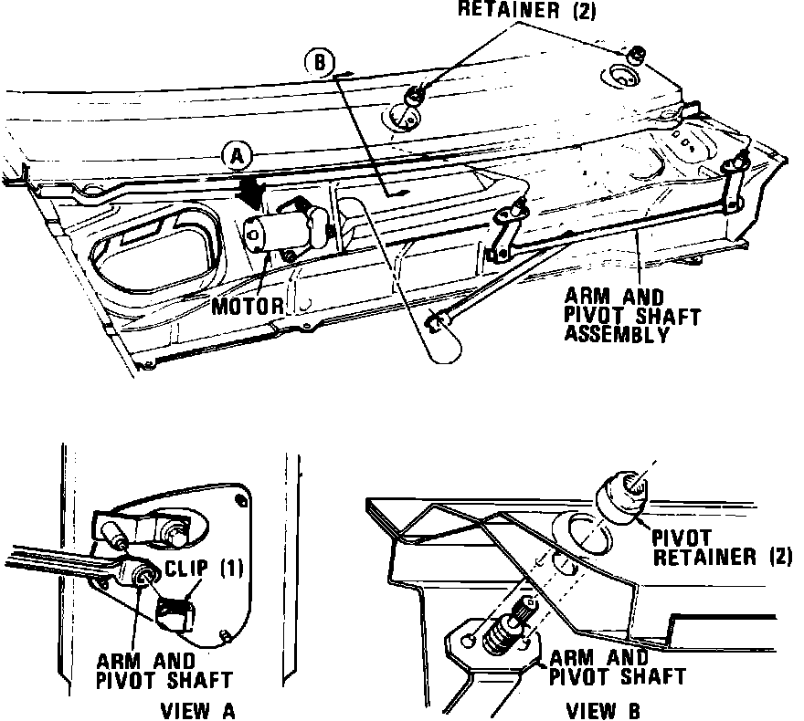 1. Remove wiper arm and blade assemblies from pivot shaft.