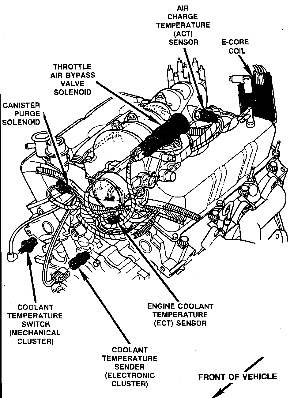 Coolant Temperature Sensor/Switch (For Computer): Locations