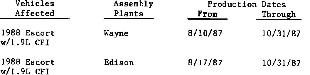 The 1988-model Escorts involved in Owner Notification Program M59 were produced as follows: