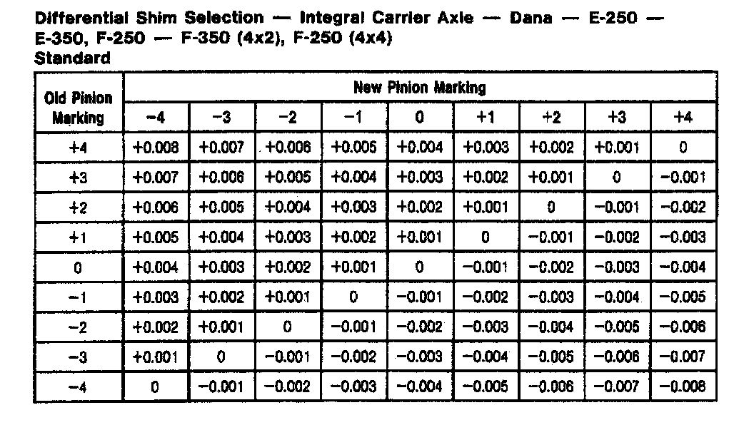 Dana 44 IFS HD, Differential Shim Chart: