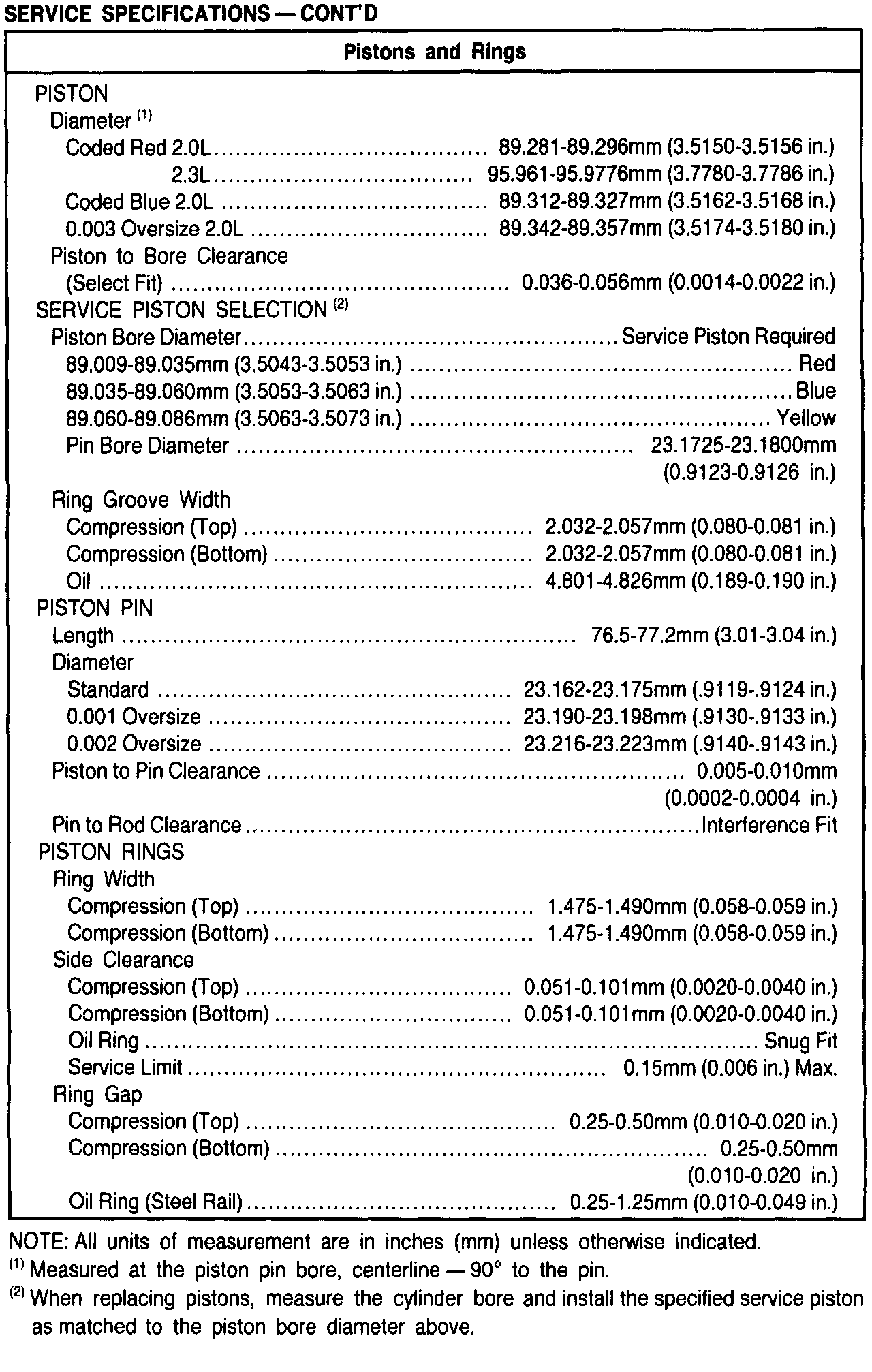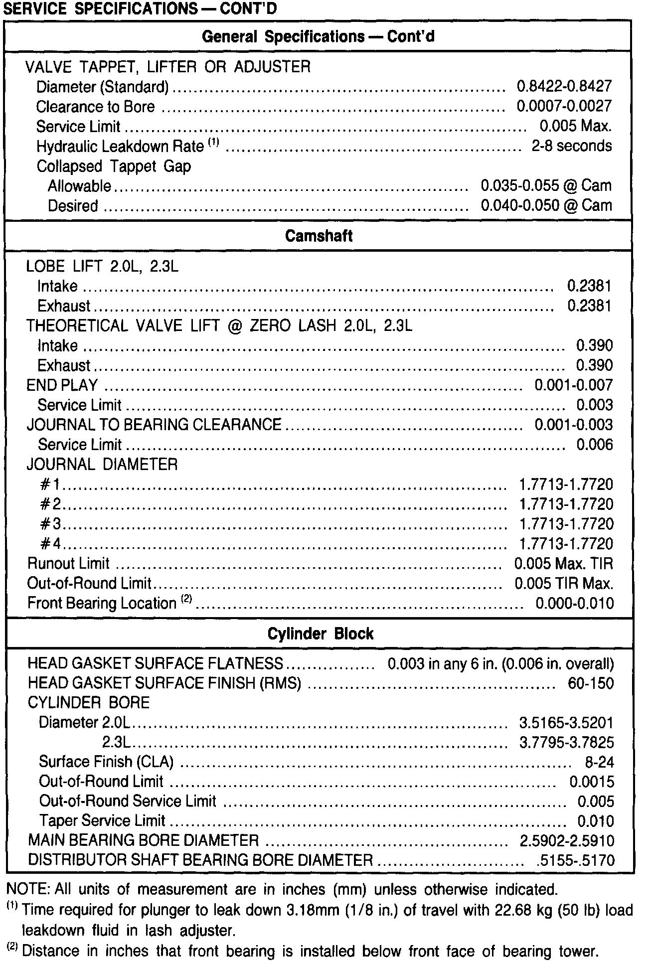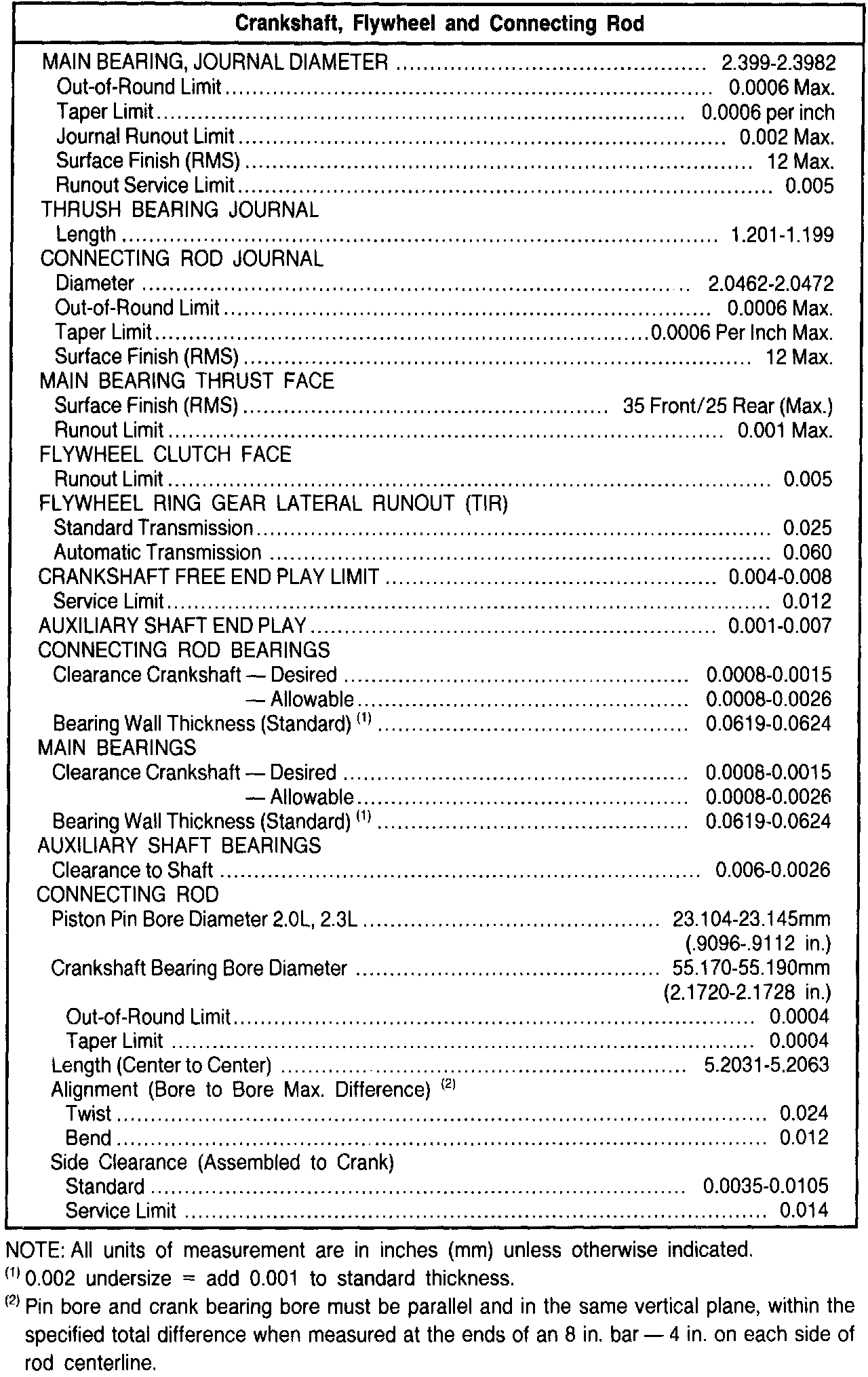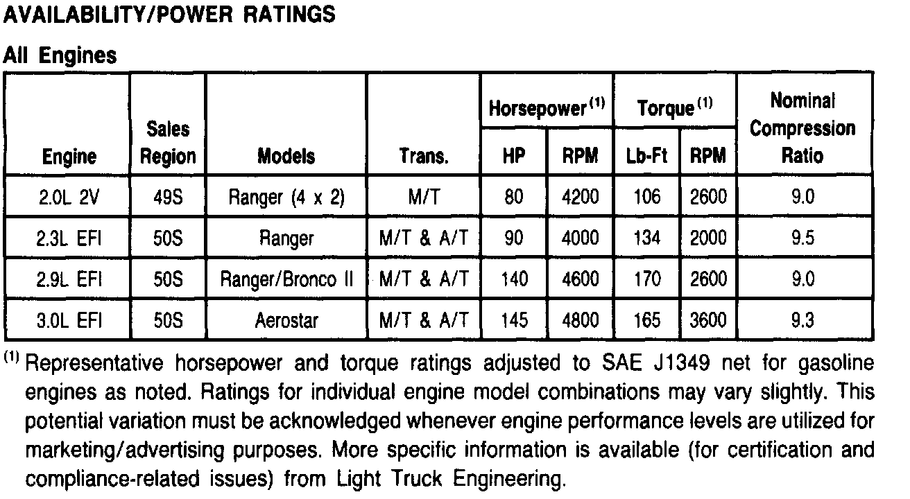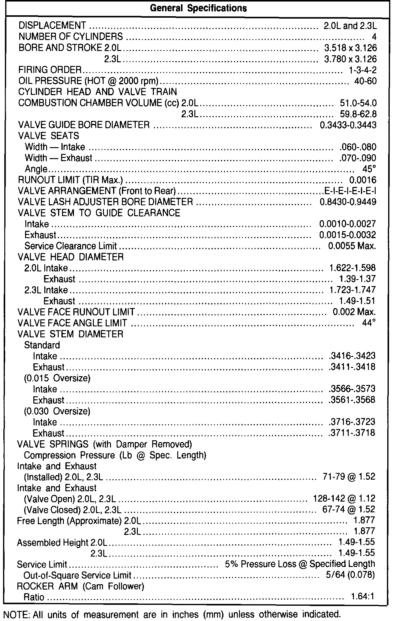 General Engine Specifications