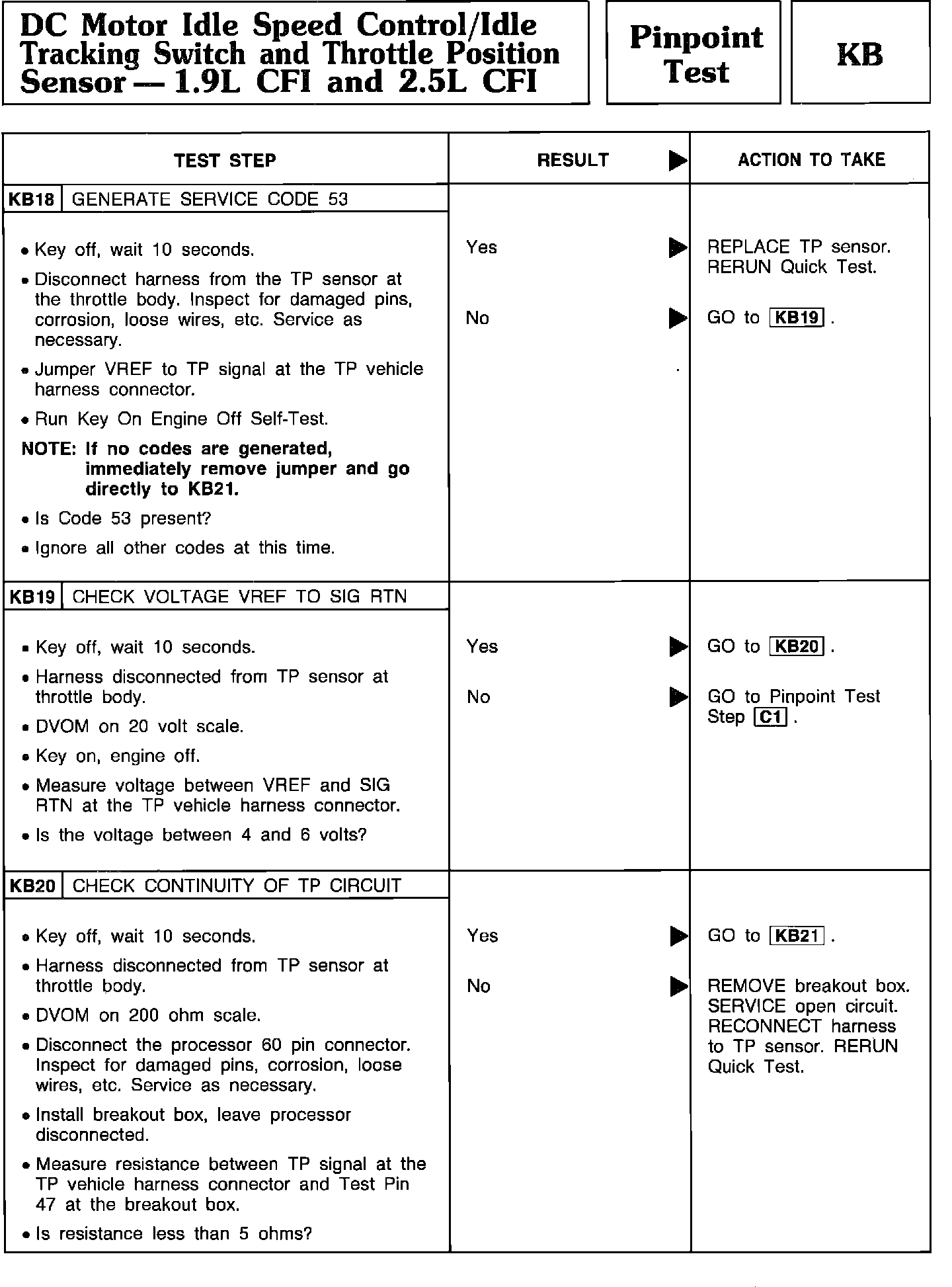 Pinpoint Test KB18 Thru KB20 - DC Motor Idle Speed Control/Idle Tracking Switch/TPS: