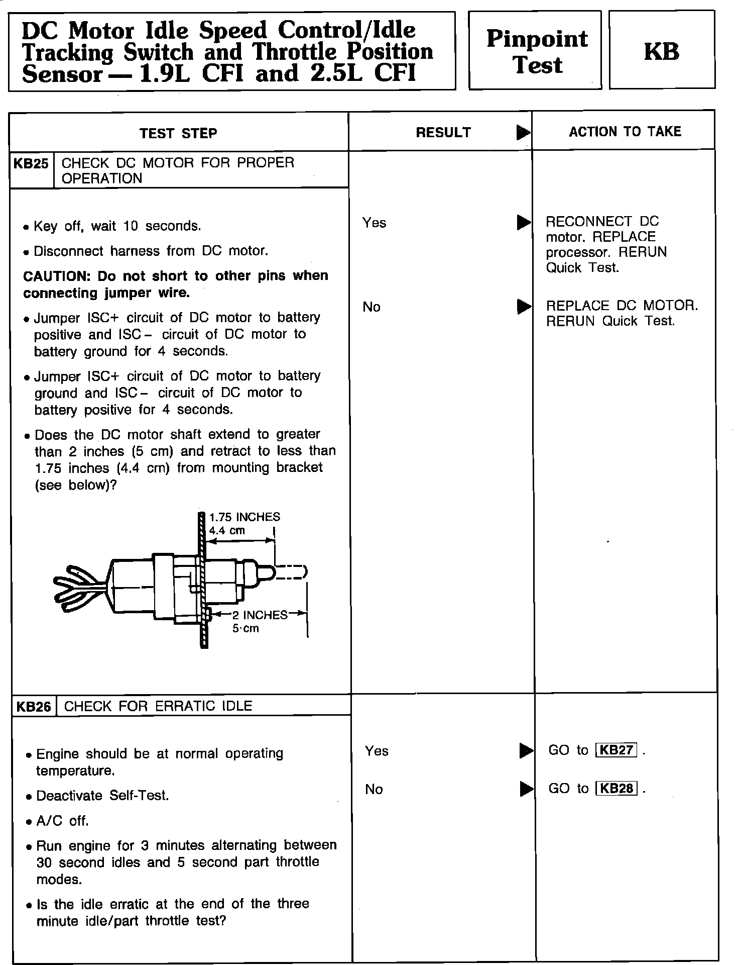 Pinpoint Test KB25 & KB26 - DC Motor Idle Speed Control/Idle Tracking Switch/TPS: