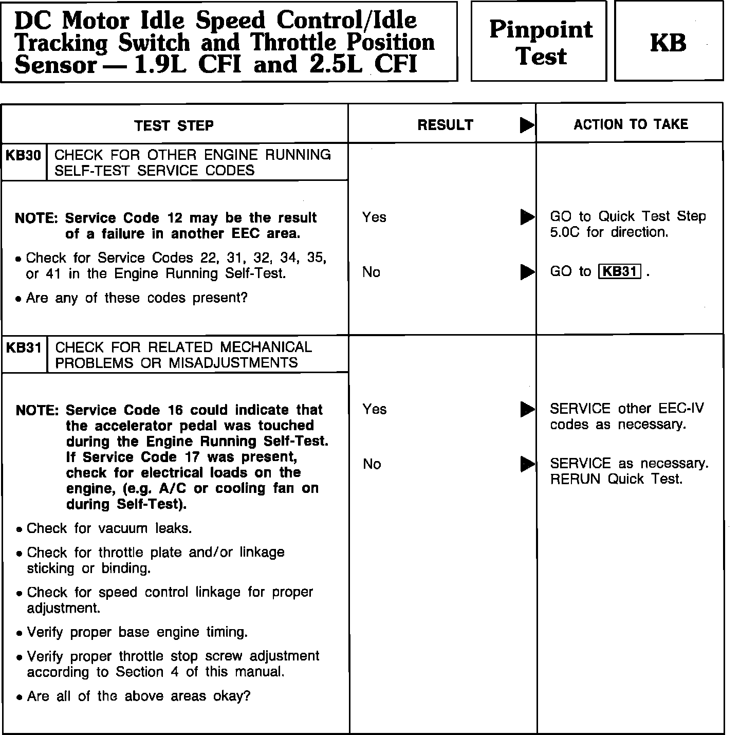 Pinpoint Test KB30 & KB31 - DC Motor Idle Speed Control/Idle Tracking Switch/TPS: