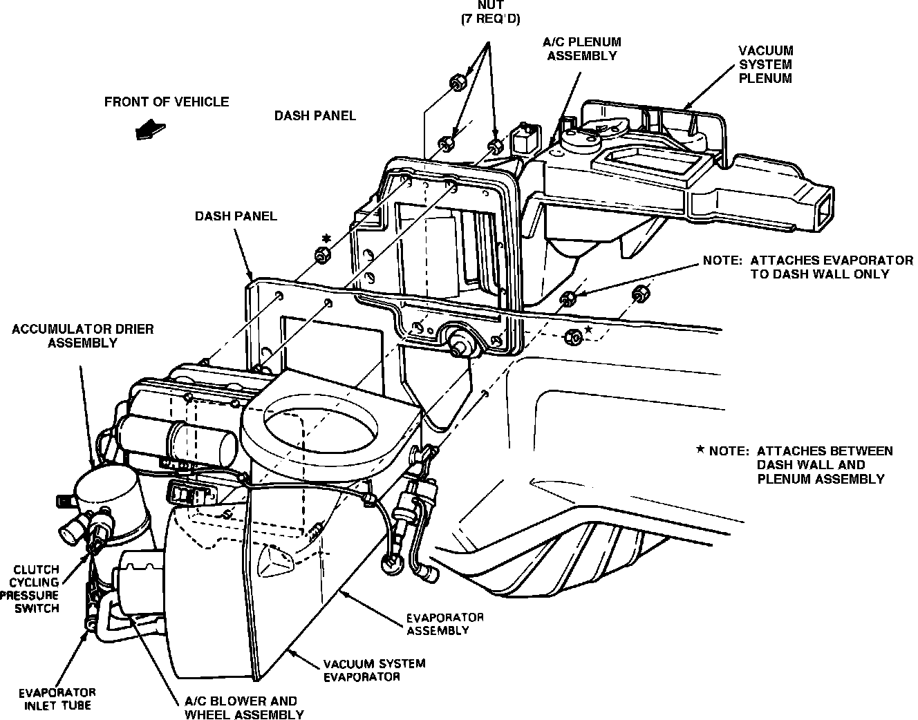 8. Disconnect accumulator/dryer assembly from evaporator core outlet tube and remove the assembly.