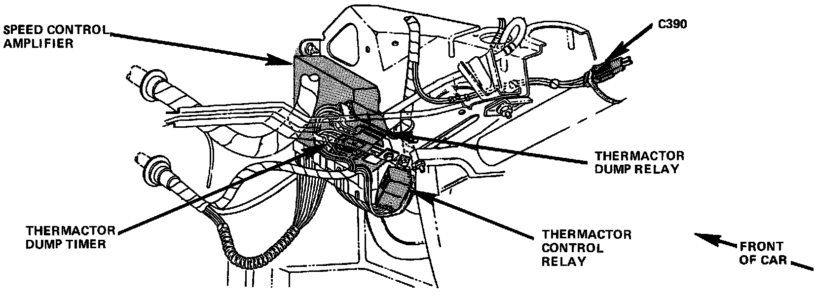 The Cruise Control Module or Speed Control Amplifier is located Behind the Instrument Panel, and Left of the Steering Column.