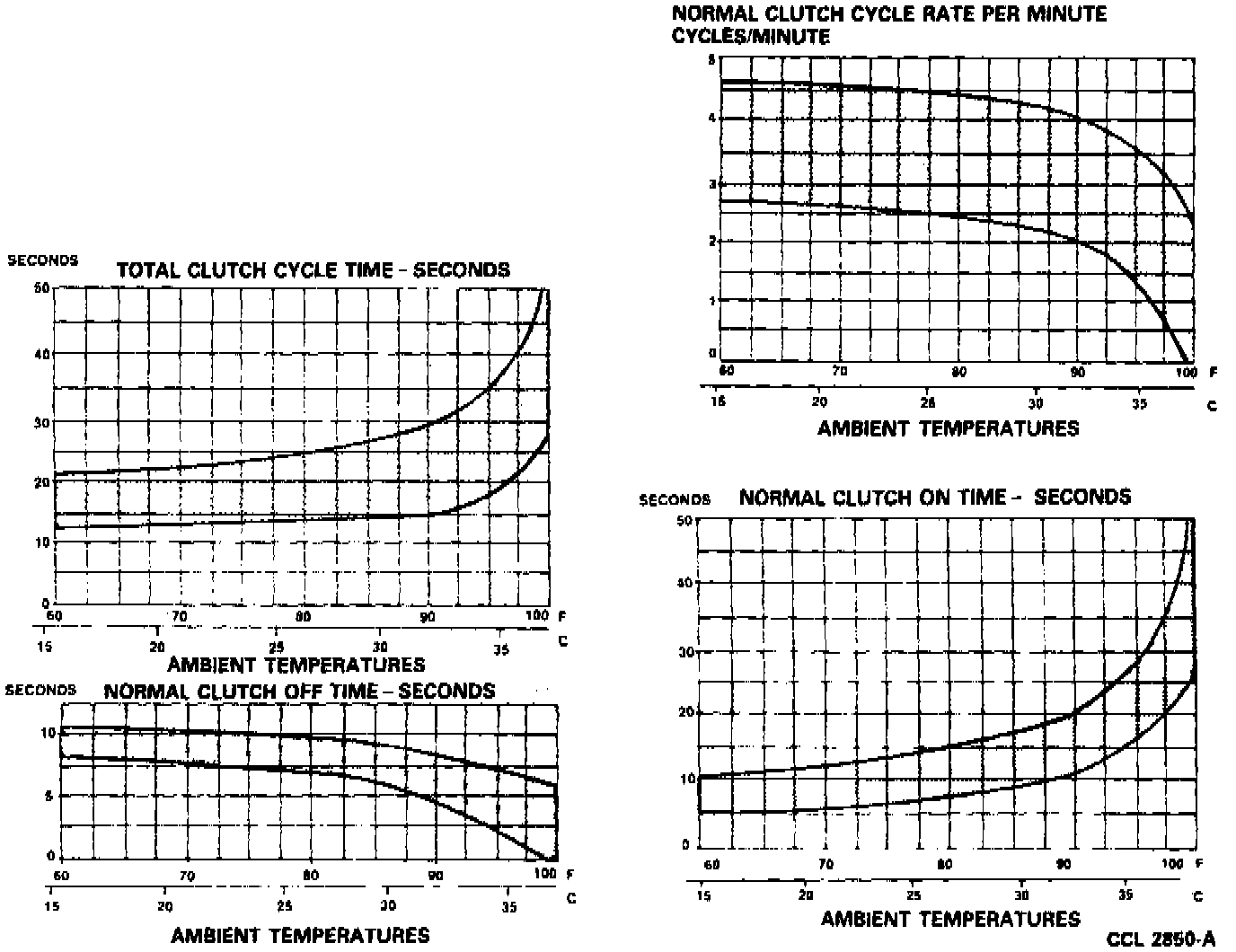 ^ Clutch cycle times are the lengths of time (in seconds) that the clutch is ON and OFF.