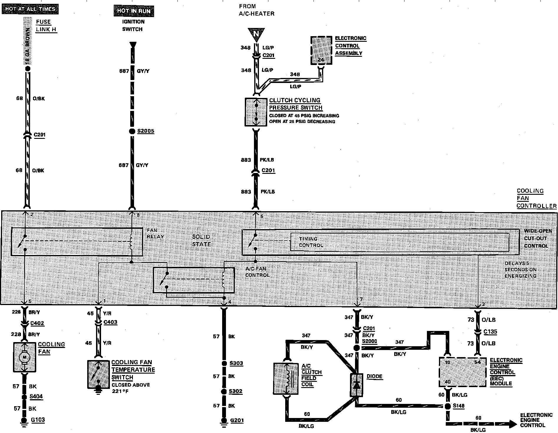 Compressor Clutch & Cooling Fan Wiring Circuit: