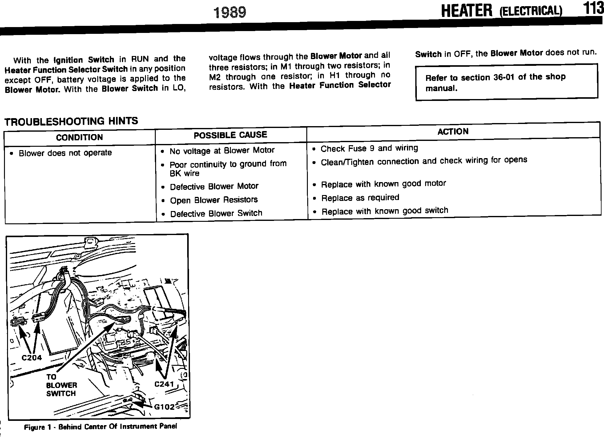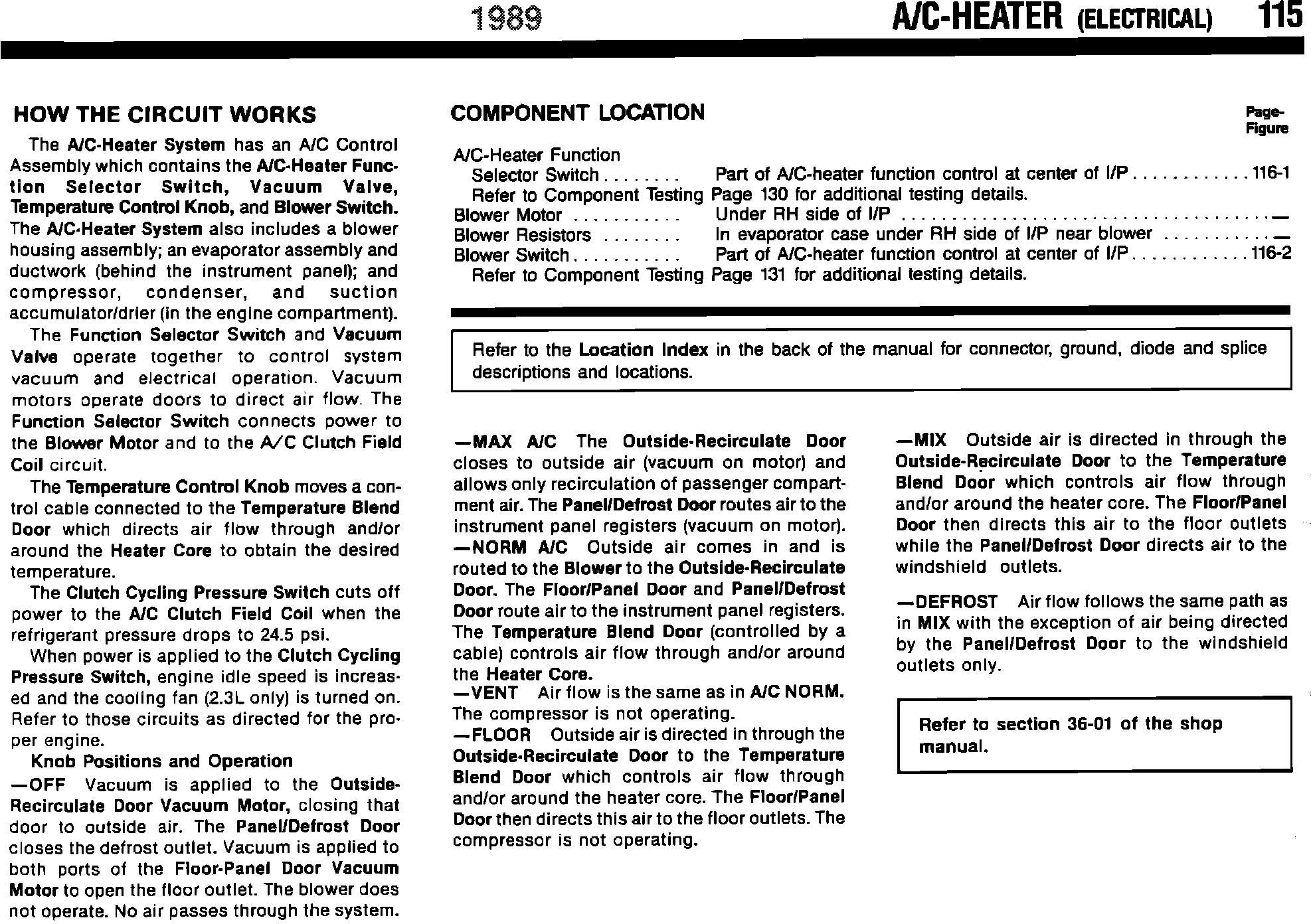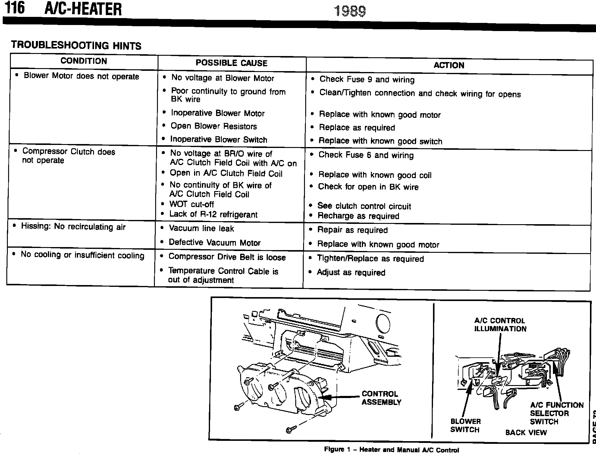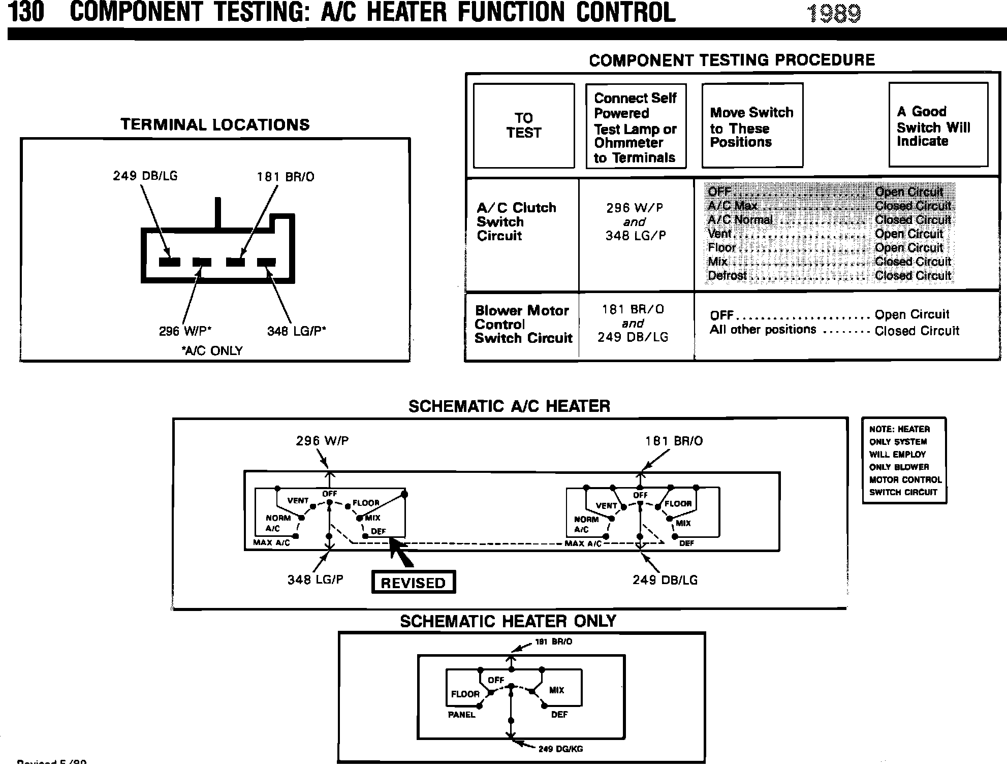 1989 A/C Heater & Component Test Information