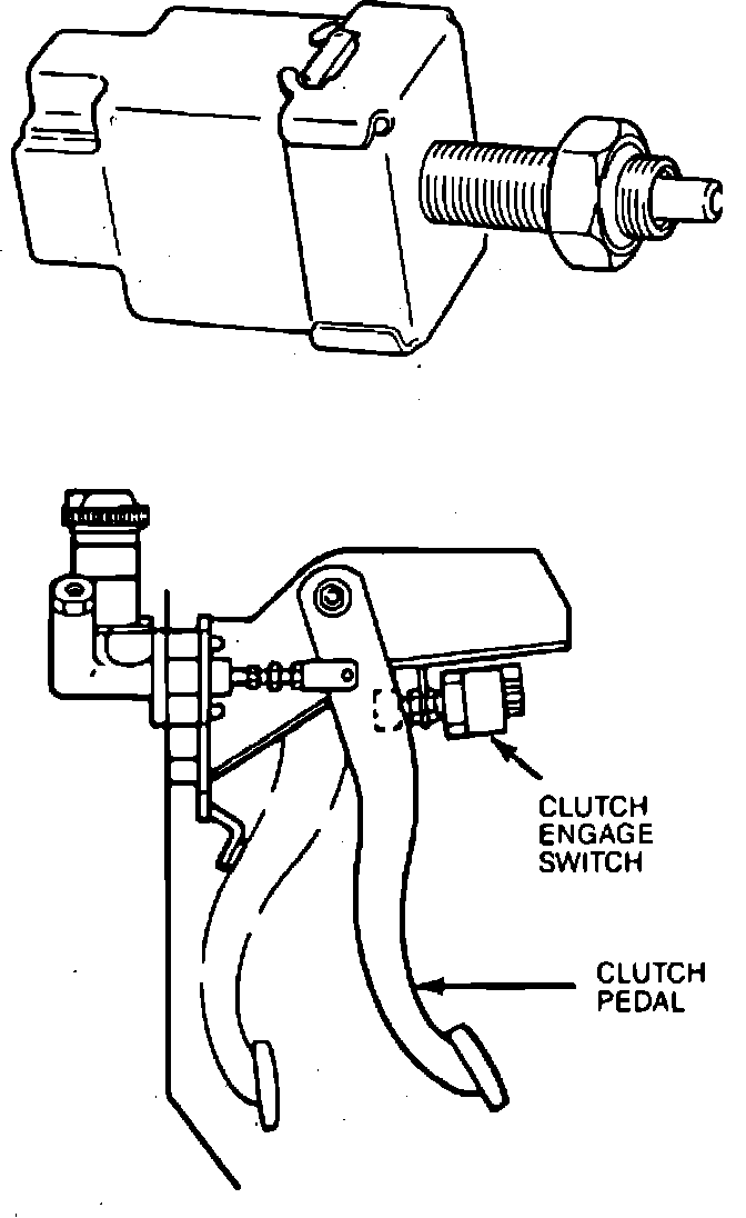 The clutch engage switch detects in-gear condition and sends a signal to the electronic control assembly. Signal from the clutch engage switch affects, air/fuel ratio, engine idle speed and ignition timing (turbocharged engine). The clutch engage switch is mounted at the clutch pedal support assembly, Fig. 5.
