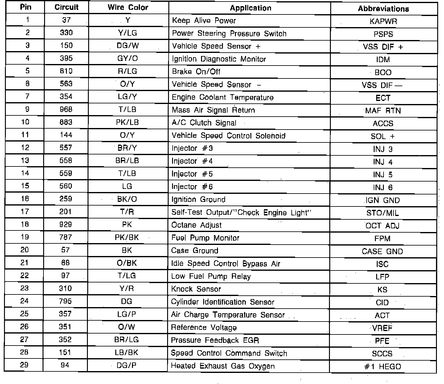 EEC-IV Module Connector Pin Usage: