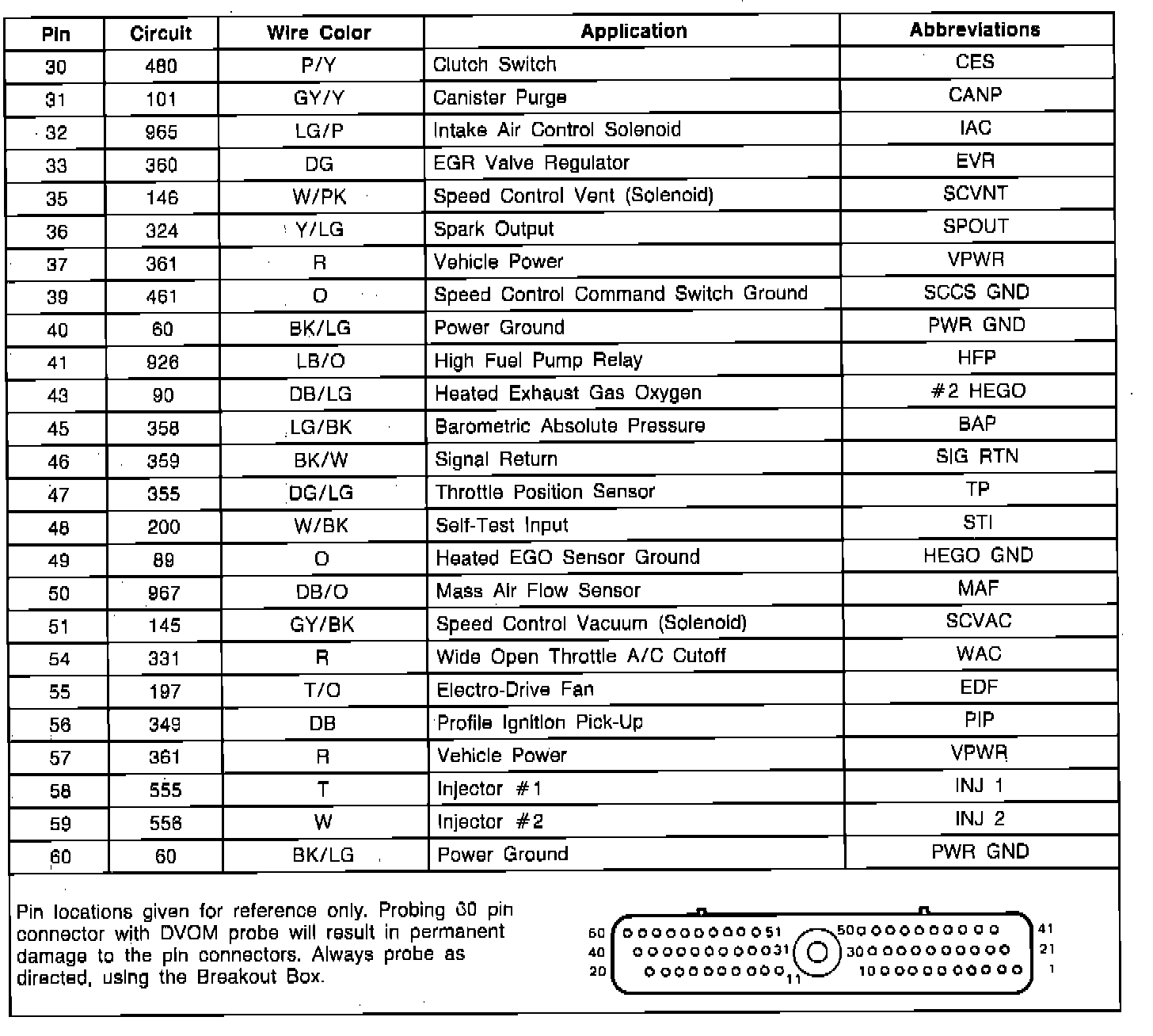 EEC-IV Module Connector Pin Usage: