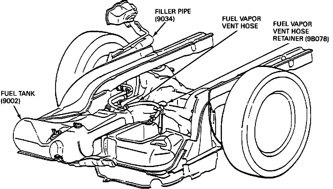 ACTION: Route the fuel vapor vent hose over the subframe and over the fuel vapor vent hose retainer as shown in Figure 1.