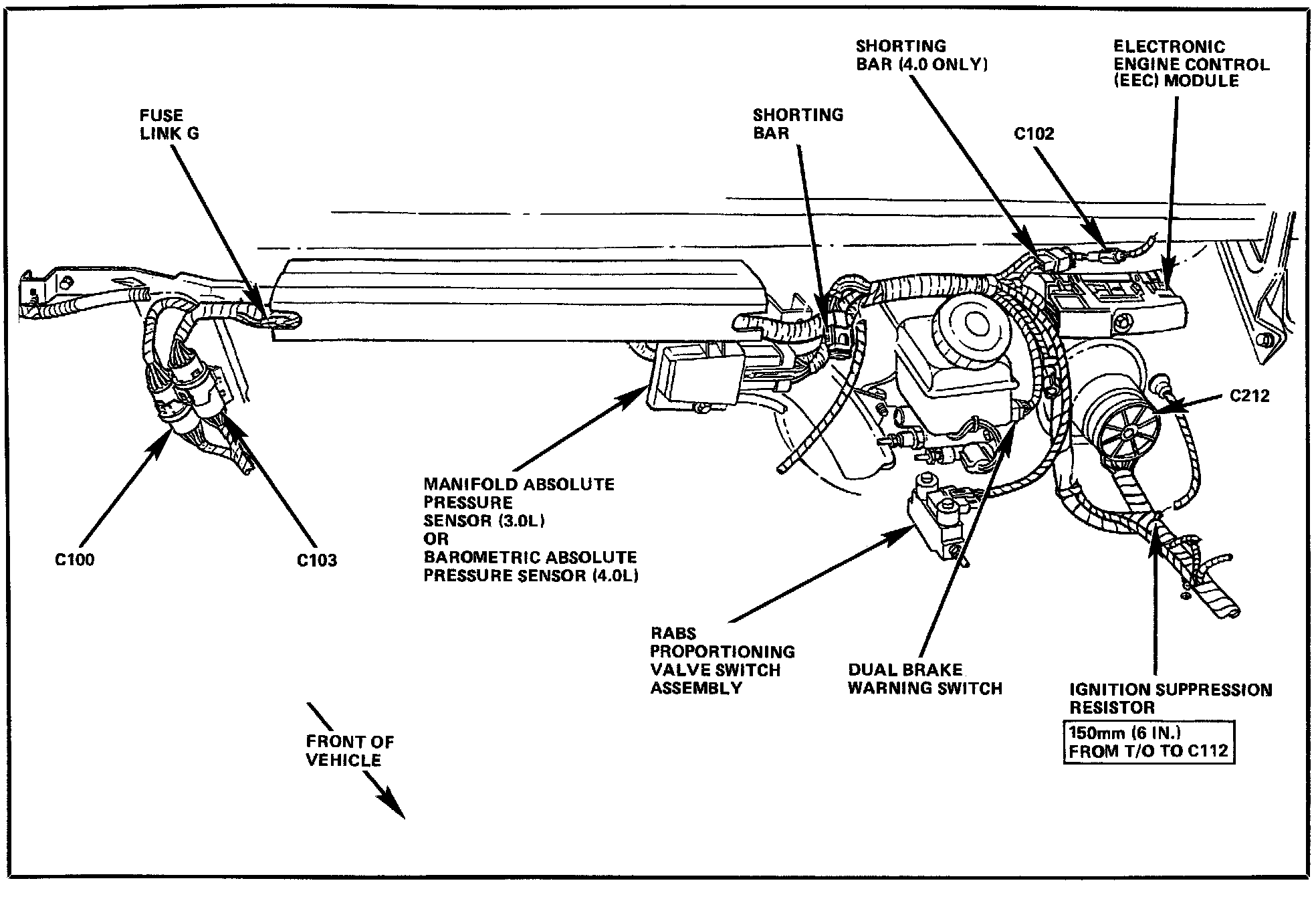 LH rear of the engine compartment, near the dual brake master cylinder.
