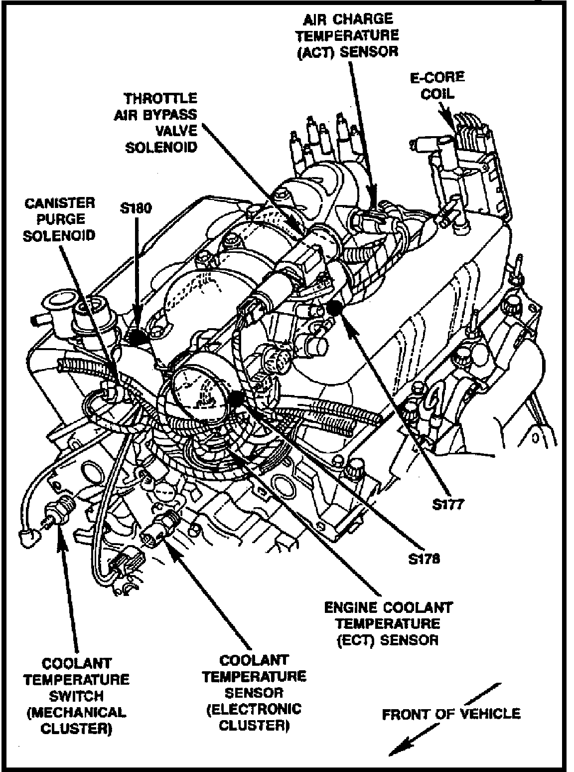 Coolant Temperature Sensor/Switch (For Computer): Locations