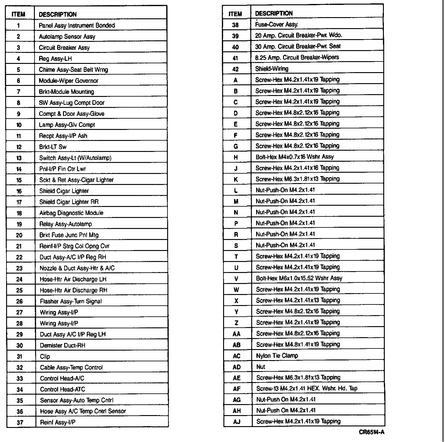 Instrument Panel - Front View: