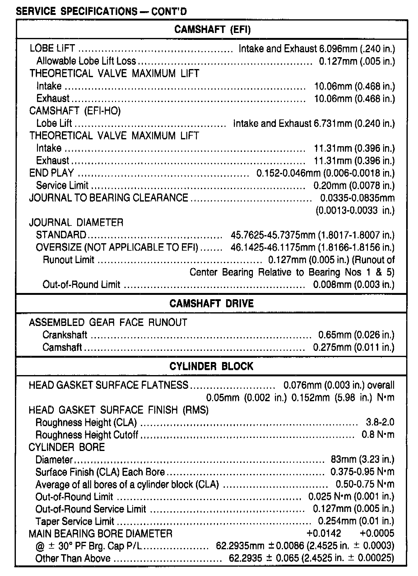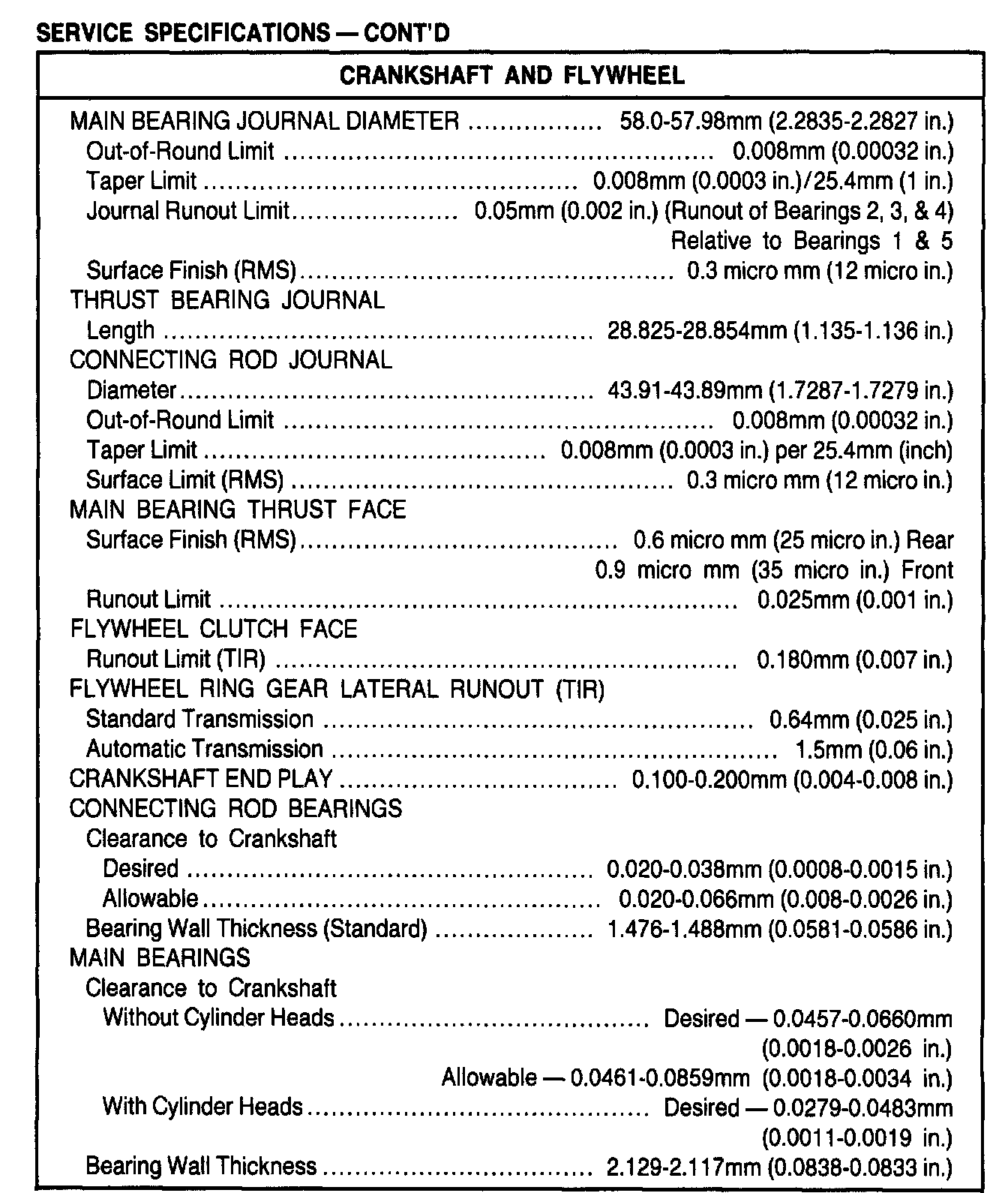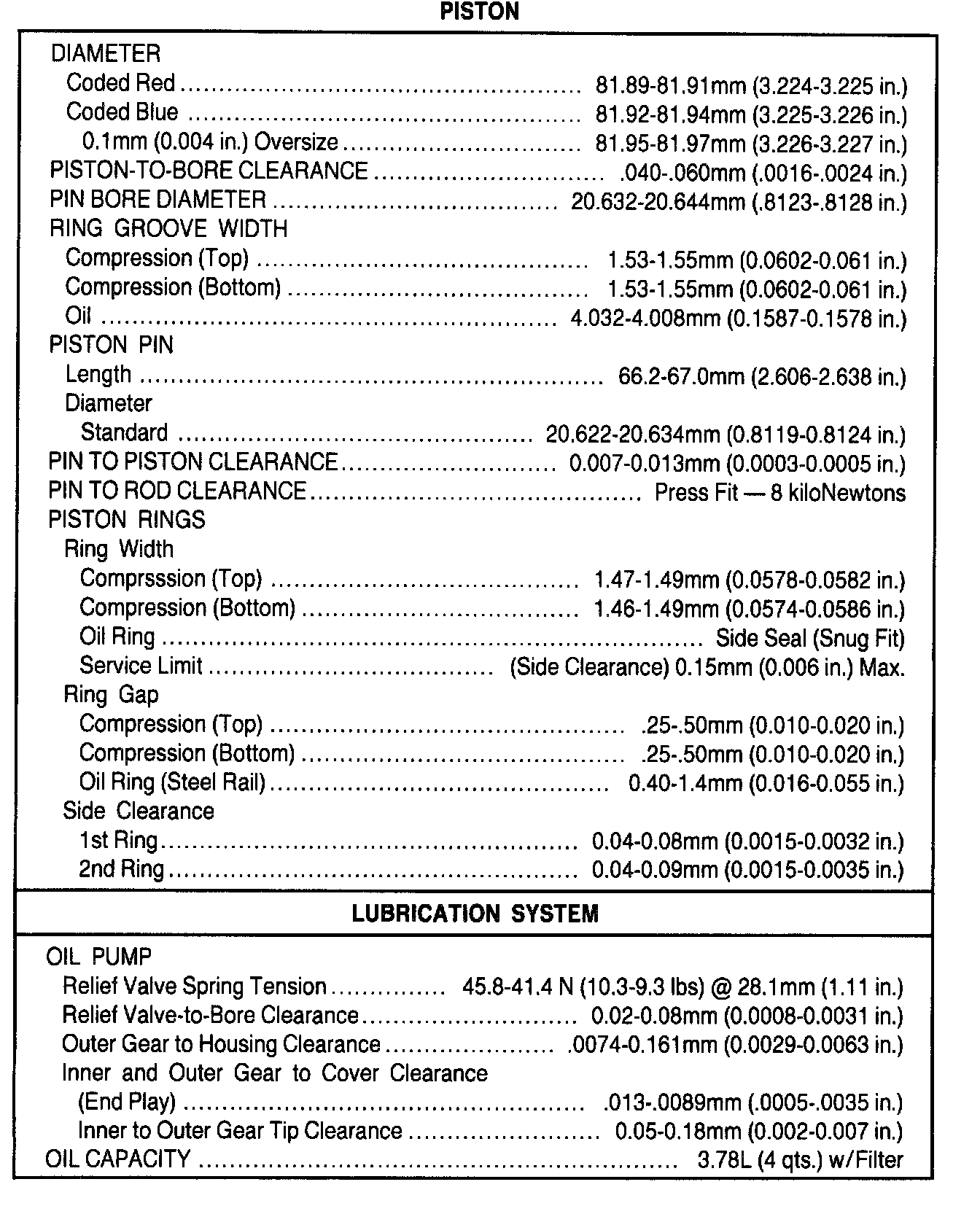 General Engine Specifications