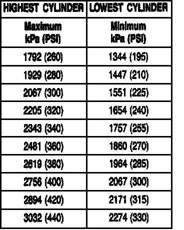 Compression pressures are considered normal if the lowest reading cylinder is within 75 percent of the highest. Variations exceeding 75 percent indicate an improperly seated valve or worn or broken piston rings.