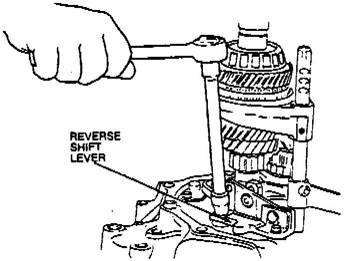 13. Remove reverse shift lever, the lever set spring and the roll pin from the 3rd-4th shift fork and rod.