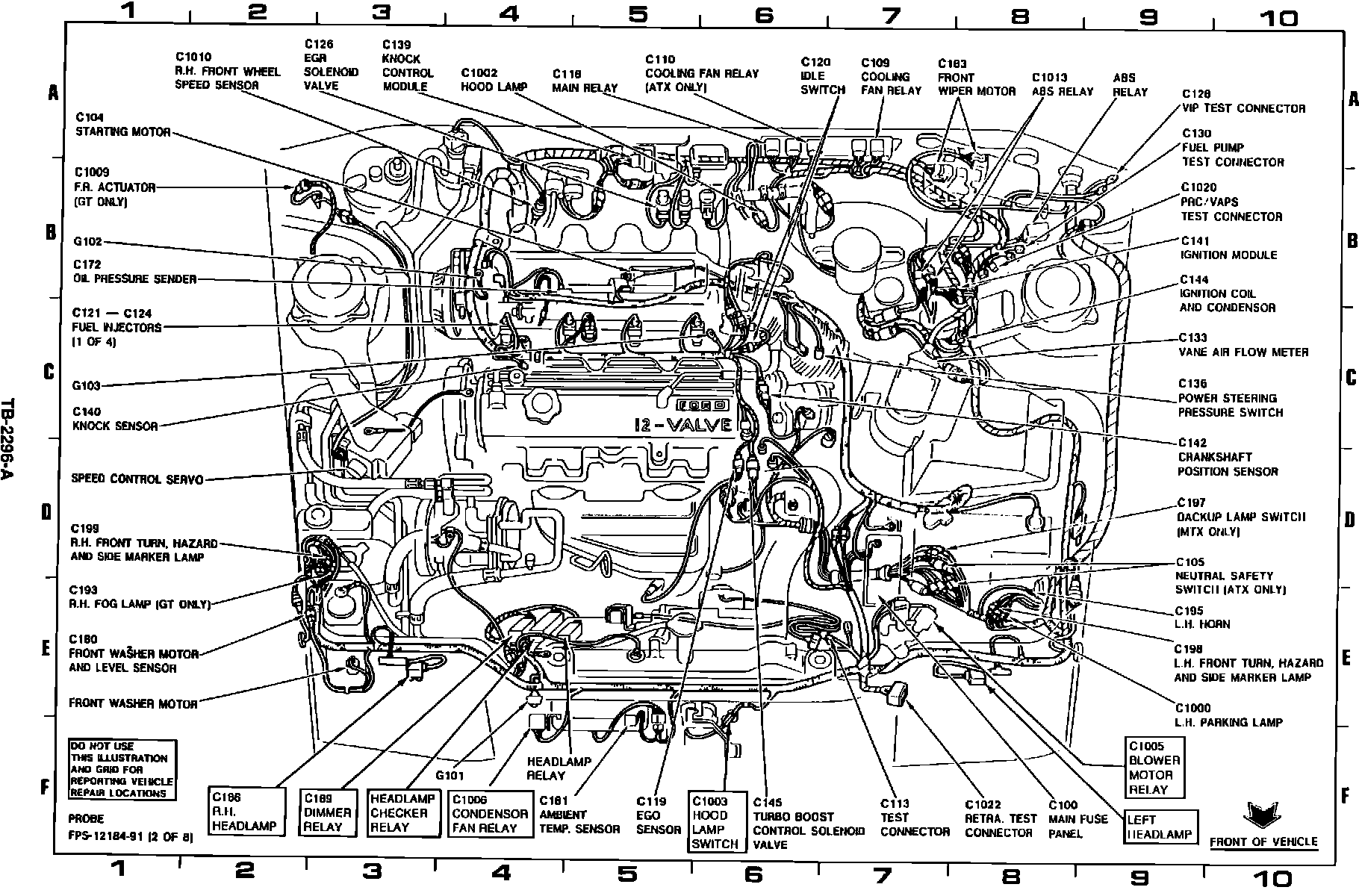 The wiring connectors join the body and engine wiring looms. A diagram of the connectors and the circuits routed through them is shown on pages 151-1, 2, 3 and 4 of the 1991 Probe EVTM or Figure 1.