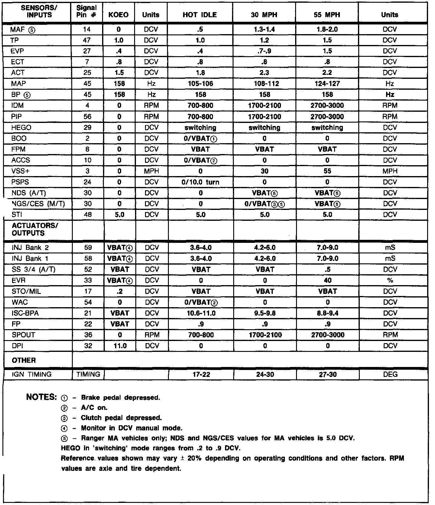 Normal Scan Data Values (Includes PIDs)