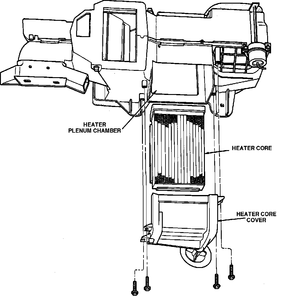 3. Working inside the passenger compartment, remove screws attaching heater core access cover and remove the cover.