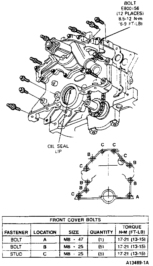 9. Install the cylinder front cover. Tighten front cover attaching screws to 17-21 Nm (13-15 ft lb). Install the oil pan and radiator.