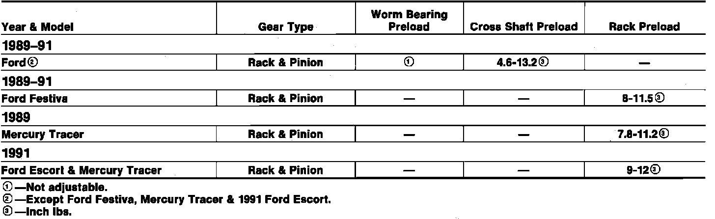 Steering Gear Adjustment Specifications: