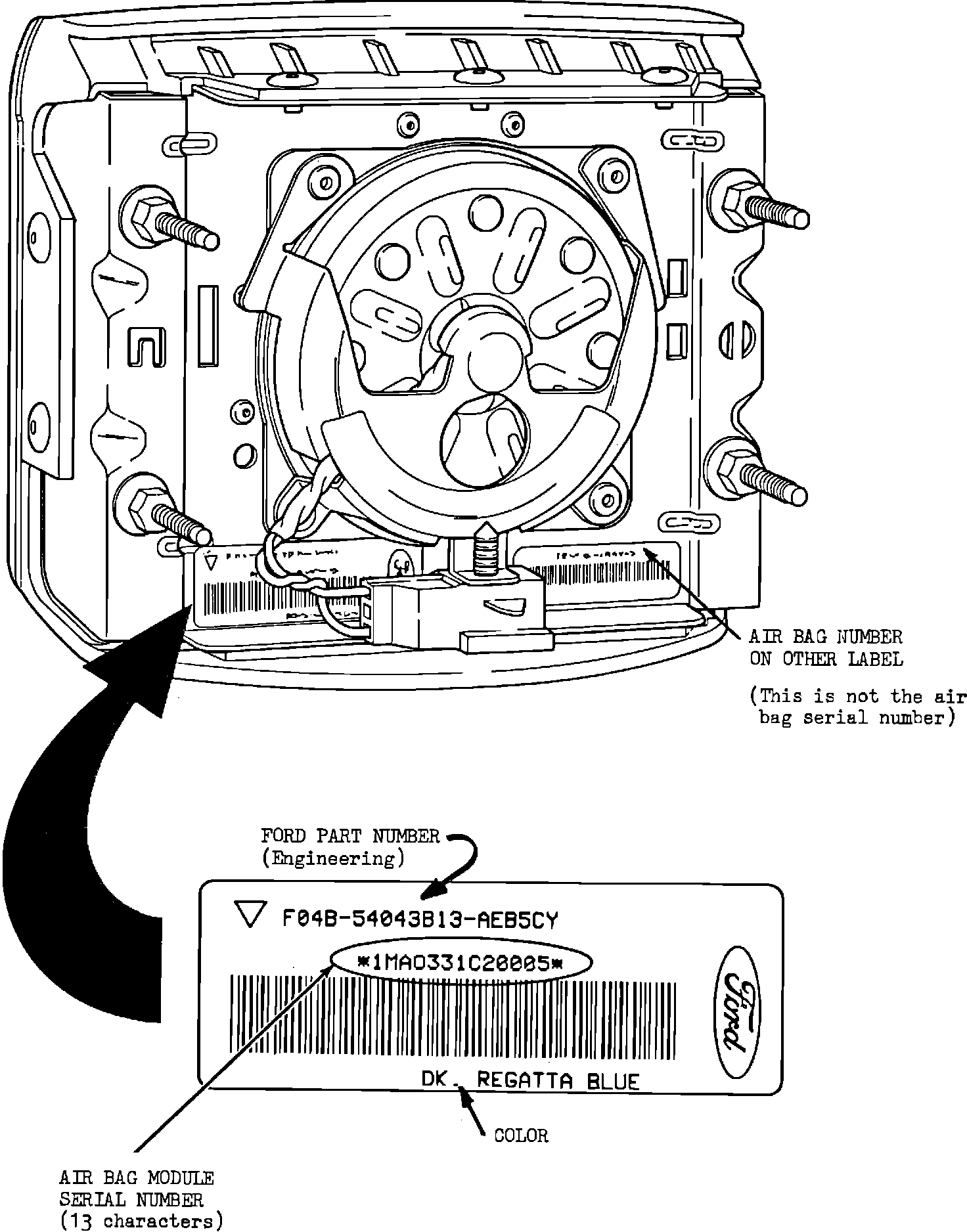 The module serial number is on the label with the Ford oval, below the Ford part number. The label is on the back side of the module. (See Figure 1). If Wixom advises that the serial number indicates a suspect module, provide a rental car to the customer until a replacement module is received and installed. If serial number does not indicate a suspect module, re-install original module and release car.