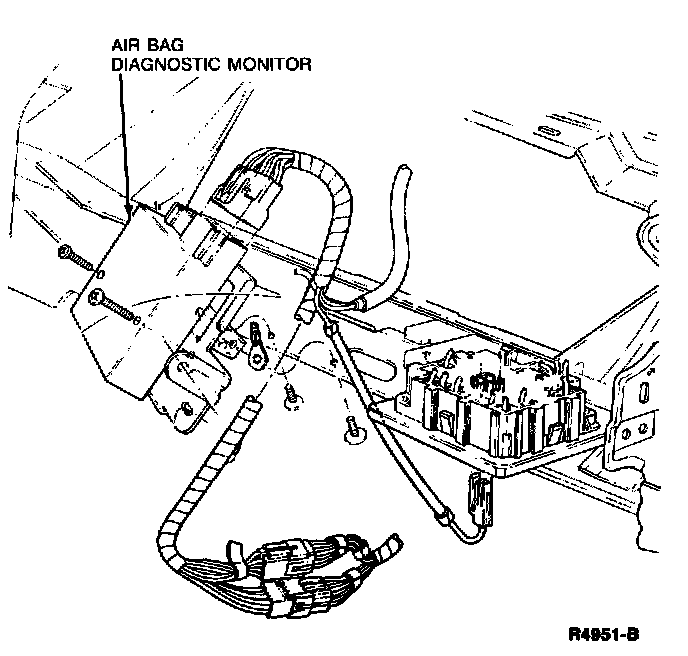 6. Remove two screws attaching diagnostic monitor and bracket assembly to instrument panel brace and remove assembly.