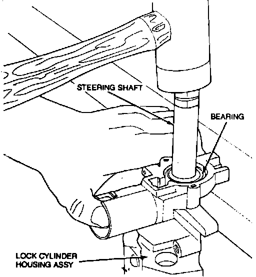 1. Hand press upper steering shaft bearing and sleeve into lock cylinder housing bearing bore.
