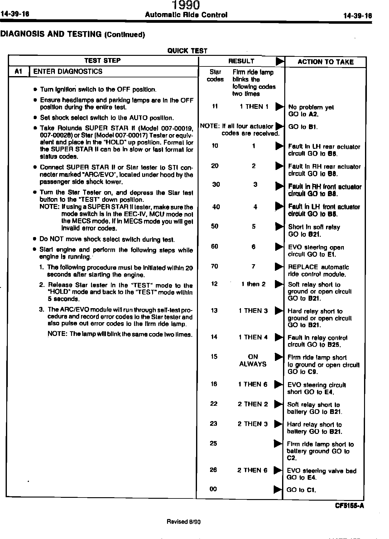 90ford30 SHOP MANUAL - 1990 - PAGE 14-39-16 - AUTOMATIC RIDE CONTROL QUICK TEST STAR TEST FAULT CODES REVISEDArticle No. 90-18B-6